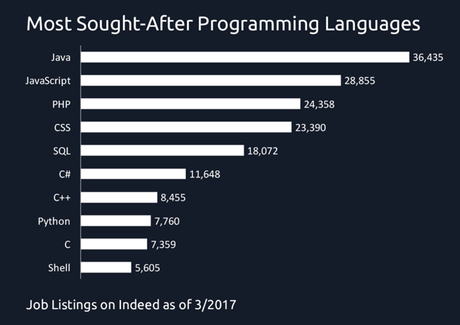 Najbardziej pożądane języki programowania na rynku - wśród firm poszukujących programistów: